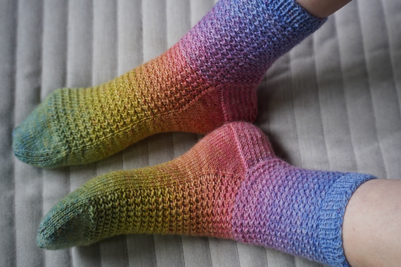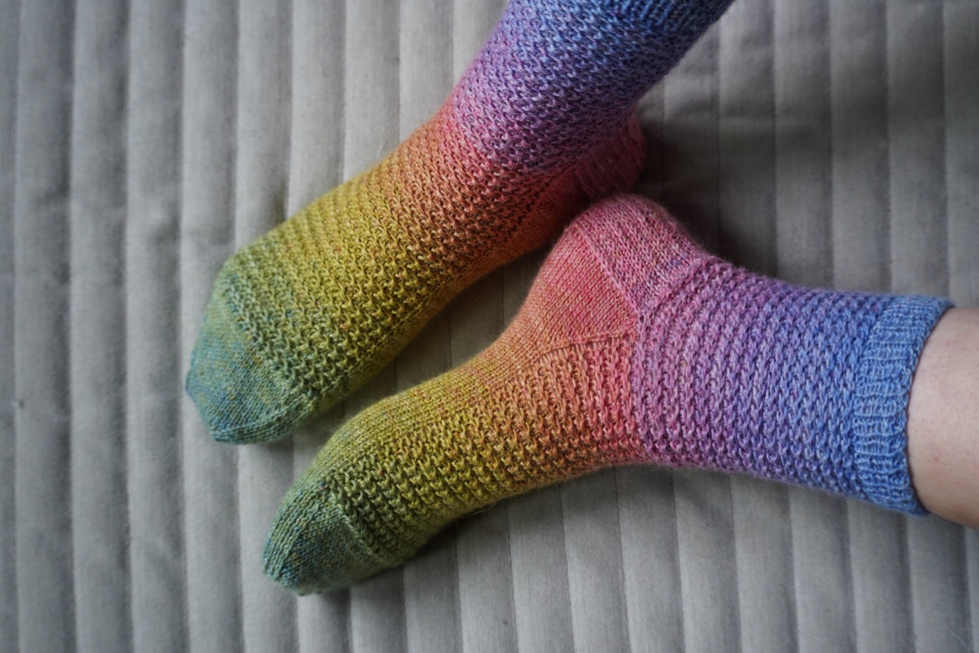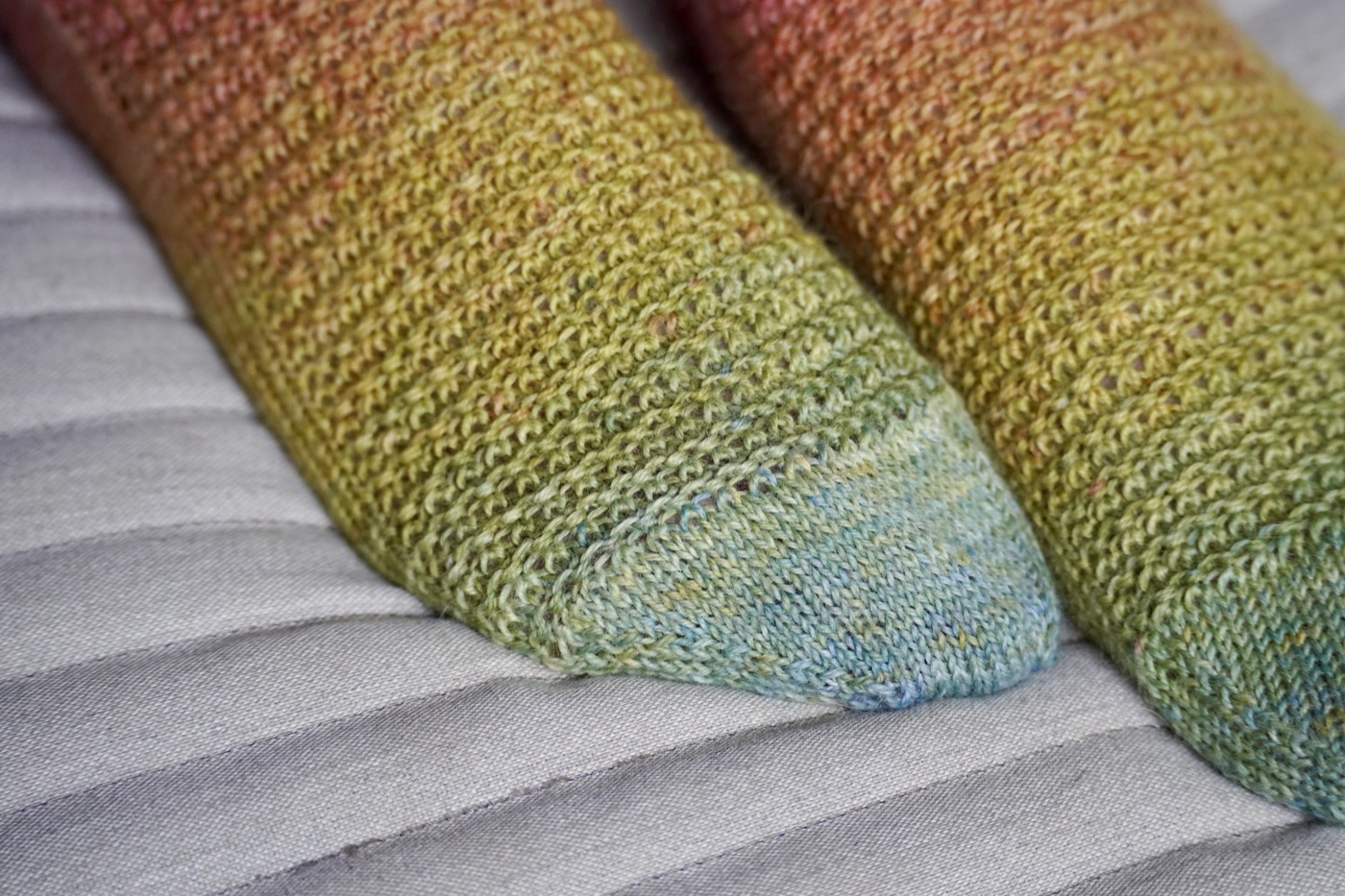 Ferri utilizzati: 2,5mm cavo 80cm e 2 ferri 2,5mm a doppia punta (per realizzare il tallone). Oppure miniferri circolari 2,5mm e ferri a doppia punta 2,5mm.