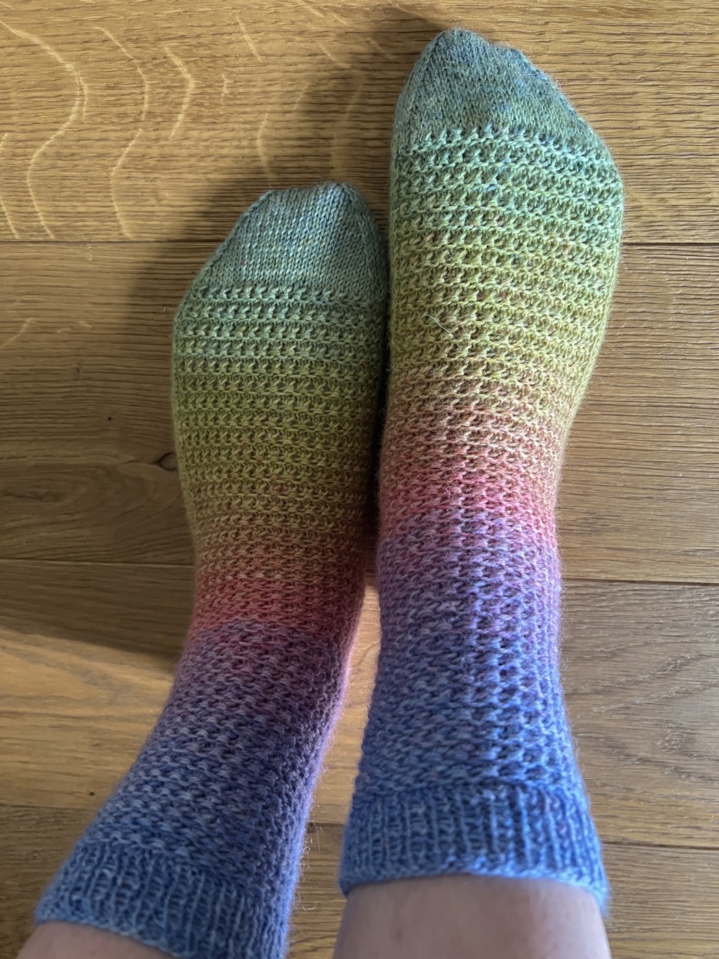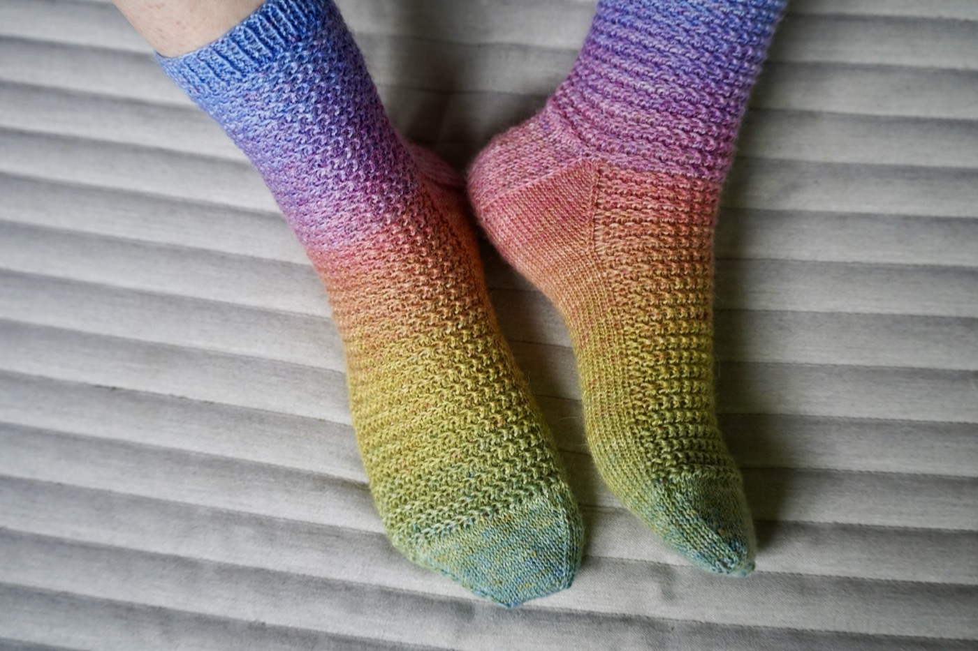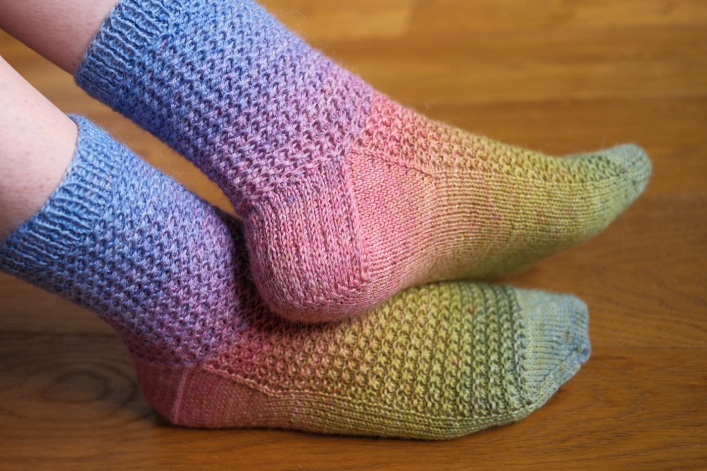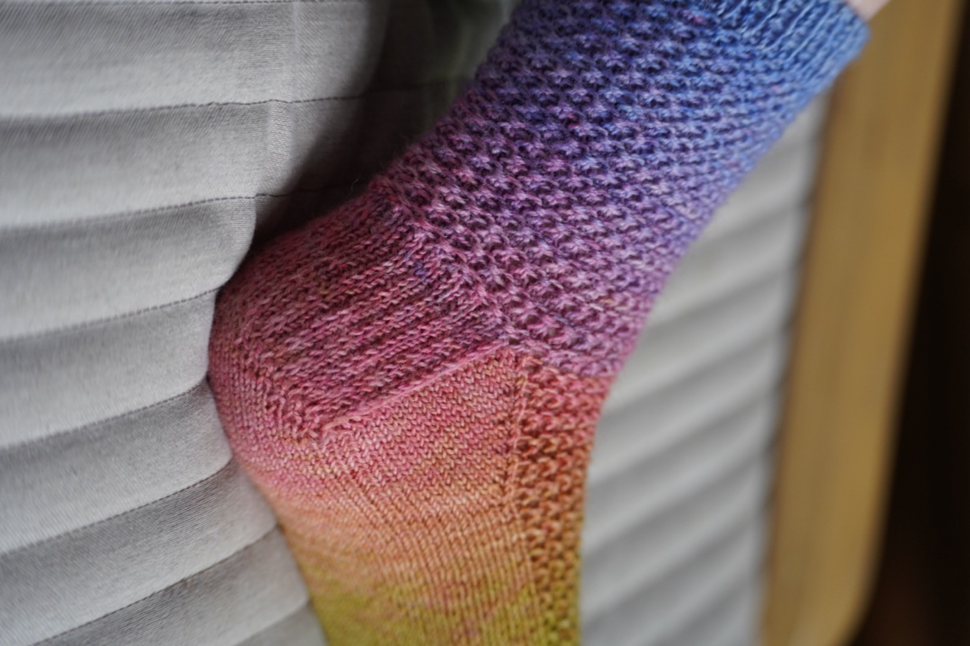 Ferri utilizzati: 2,5mm cavo 80cm e 2 ferri 2,5mm a doppia punta (per realizzare il tallone). Oppure miniferri circolari 2,5mm e ferri a doppia punta 2,5mm.