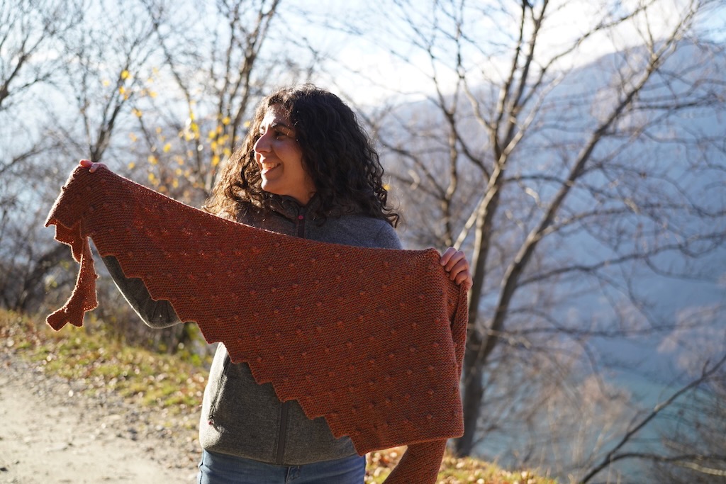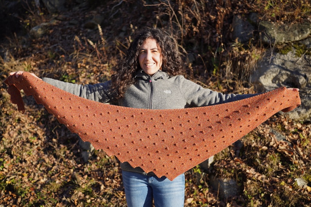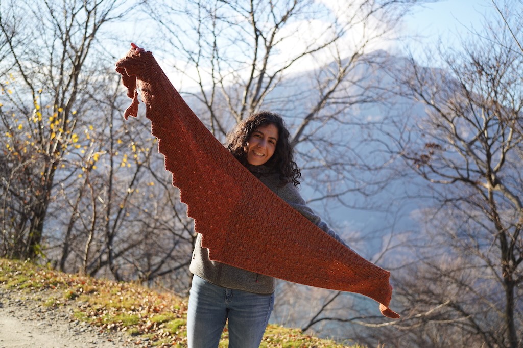 Istruzioni per realizzare lo scialle Drogon ai ferri.
